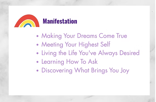 This foundation includes learning about and practicing different techniques and life style traits that will assist the inner transformation necessary to see the most success with spiritual growth. We will dive into the concepts of mindfulness, gratitude, self-love, and compassion as these are very important aspects of soul growth and will allow the space for progressing through your awakening. We cover the seven major chakras, or energy centers, that exist within your subtle body, along the base of the spine to the top of the head. These are integral pieces of the puzzle when co-collaborating with spirit and the divine. Next, we will cover universal consciousness and spirit, bringing a new perspective on why we are here on this planet, living this life, in addition to realizing that we are not alone, we are truly loved and supported, and have access to unlimited guidance and wisdom within us. Lastly, we will dive into manifestation, what that truly means, and how to co-create the life that we truly desire and deserve. Below, you will see the roadmap which shows each part of the program, in order. You can click on any of the images to learn more about each step.